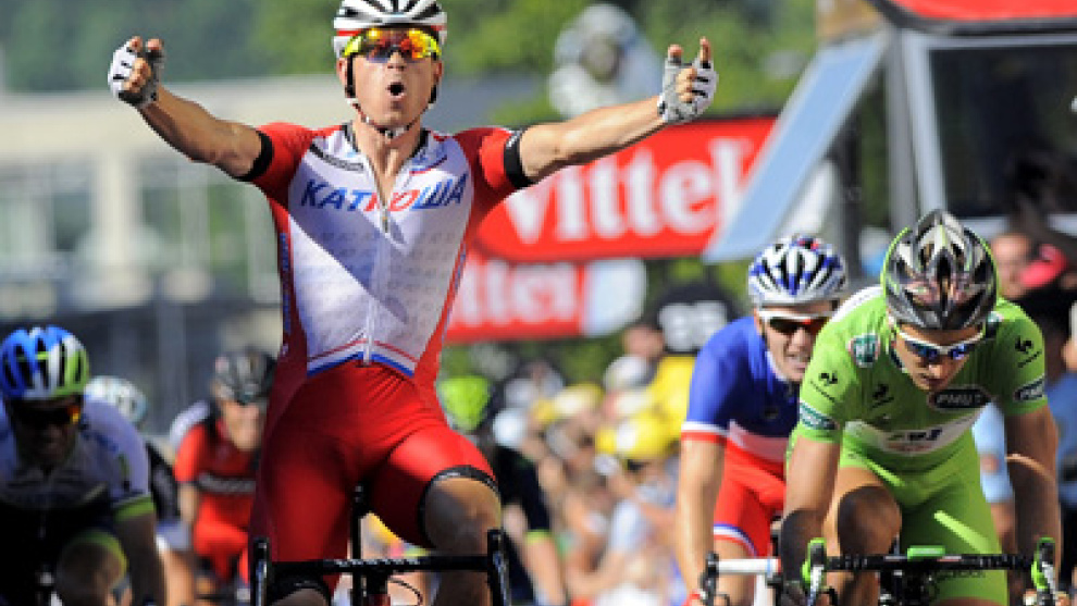 En la meta de Saint-Etienne fue menos rápido que Kristoff, que a sus 27 años logró su primera victoria en la ronda gala tras haber logrado esta edición dos segundos puestos, superado en Lille por Kittel y en Reims por Greipel. Sin ellos, el ciclista del Katusha, vencedor este año de la Milán-San Remo y de la Eschborn-Fráncfort, fue más veloz que ninguno y logró el triunfo.