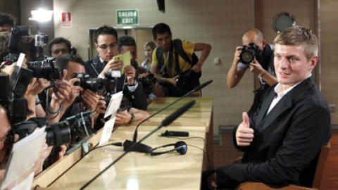 Toni Kroos ha sido presentado este jueves como nuevo jugador del Real Madrid. El recientemente proclamado campeón del Mundo con Alemania ha indicado en el Palco de Honor del Santiago Bernabéu que en ningún momento dudó en fichar por el conjunto blanco y que esta siempre fue su primera opción tras decidir que abandonaría el Bayern Múnich.