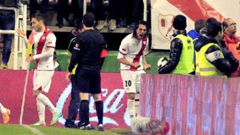 El Rayo encontró premio a su empuje a los 59 minutos cuando el rumano Razvan Rat puso un centro medido desde la izquierda que el argentino Larrivey remató cruzado de cabeza a la red. El gol llevó el delirio a las gradas de Vallecas y hasta el final la afición franjirroja no dejó de cantar, de manera atronadora a veces, para animar a su equipo que, sin embargo, se empezó a mostrar más conservador en su planteamiento.