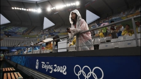 La lluvia caída sobre el Centro Internacional de Tenis de Pekín provocó la suspensión definitiva de la primera jornada de la competición olímpica cuando sólo se habían completado ocho de los 45 partidos programados para la sesión.