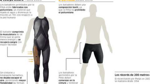 Sin embargo, la FINA, el organismo que rige la natación mundial, decidió volver a los orígenes, en los que el cuerpo del nadador está por encima del material de su bañador. Así, en 2010, se restringió la norma para volver a los bañadores textiles, si bien los récords conseguidos con los de poliuretano siguieron vigentes. Desaparecieron las vestimentas de cuerpo entero, que dieron paso a las bermudas, y la piel retomó el contacto con el agua.