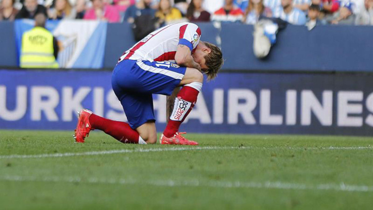 El Málaga, romo en ataque y con miedo, acusó el golpe, y el Atlético de Madrid se puso manos a la obra para sentenciar el duelo. Aún así, el conjunto malagueño cogió aire y en varias acciones a balón parado se acercó al empate, que llegó en el minuto 37 tras un saque de esquina desde la izquierda lanzado por Recio. El balón lo tocó suavemente Fernando Torres y Oblak no lo pudo atajar.