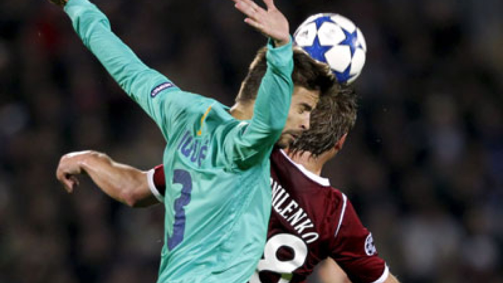 Esperando con los once futbolistas en terreno propio, el Rubin no permitía al Barça encontrar espacios para el último pase. Le obligaba a marear el esférico, como mucho, en los aledaños del área. El balón siempre era azulgrana. Pero la forma de bascular de un lado a otro, las ayudas defensivas del conjunto ruso, parecían una fórmula matemática imposible de rebasar. El Barça sólo consiguió encontrar un par de veces el pasillo por el que colar su talento antes del descanso. En la ocasión más clara, Pedro se topó con el travesaño al intentar una fina vaselina.