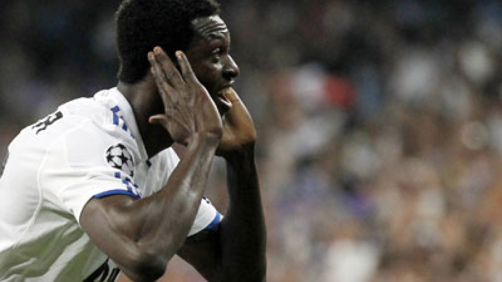La grada del Bernabéu acoge como nuevo héroe a Adebayor, al que arropa y celebra con cánticos y simpáticos apodos