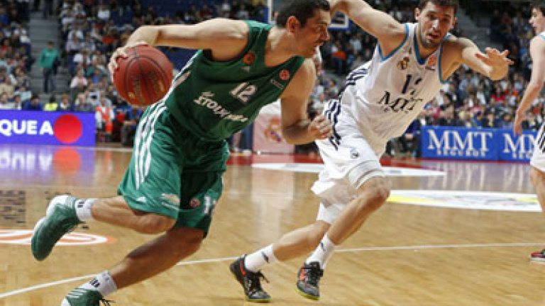 Rudy Fernández (17 puntos), que estaba de regreso, dejó su carta de presentación en el primer minuto y medio con dos robos culminados en contraataque, pero pronto el partido cayó rendido a la música clásica de Dimitrios Diamantidis. El jugador griego le puso un somnífero al partido, adormeció el ritmo y bajó las revoluciones de un Real Madrid visiblemente incómodo.