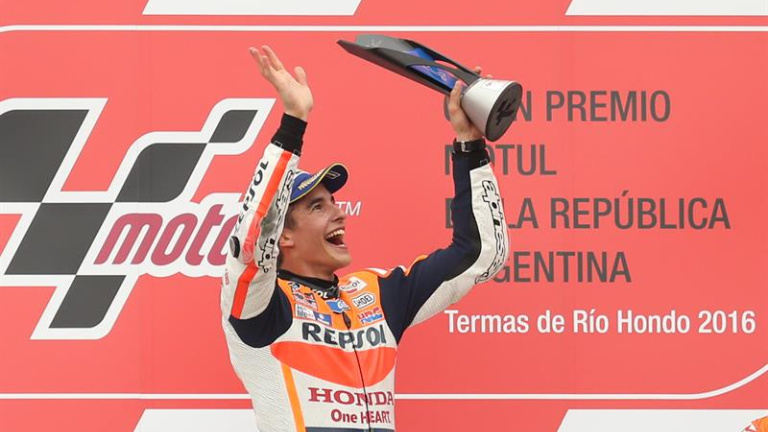 TERMAS DE RÍO HONDO (ARGENTINA).- El español Marc Márquez (Repsol Honda RC 213 V) se sobrepuso a todas las adversidades que han marcado la carrera de MotoGP en el Gran Premio de Argentina y tras dominar casi todos los entrenamientos hizo lo mismo durante un prueba que por seguridad se vio reducida de veinticinco a veinte vueltas.