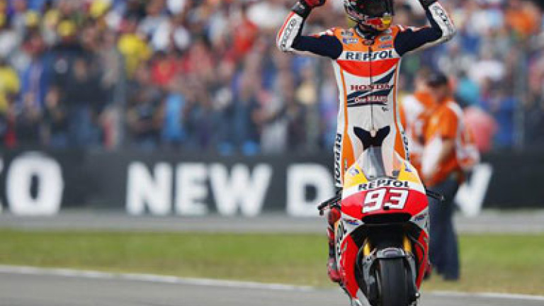 El piloto español Marc Márquez (Repsol Honda) se ha exhibido de nuevo para lograr su octavo triunfo consecutivo en ocho carreras en la categoría MotoGP en el Gran Premio de Holanda, en una prueba en la que sólo el italiano Andrea Dovizioso (Ducati) ha podido discutirle la victoria, mientras que Dani Pedrosa (Repsol Honda) ha completado el podio con su tercera posición.