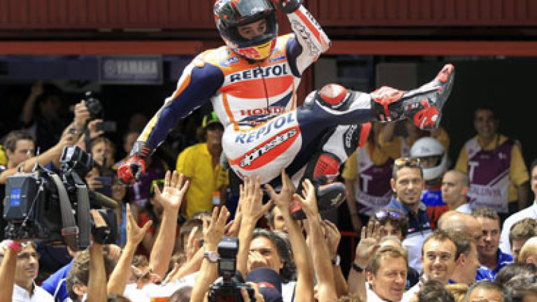 Márquez lo hizo otra vez. No era un circuito propicio para él, ya que solo había ganado aquí en 2010 y en 125 c.c, y lo celebró a lo grande. Delante de su gente, de un público enfervorizado que hoy llenó el circuito y disfrutó como nunca de un duelo a tres bandas como el que hacía tiempo no se recordaba en Montmeló.