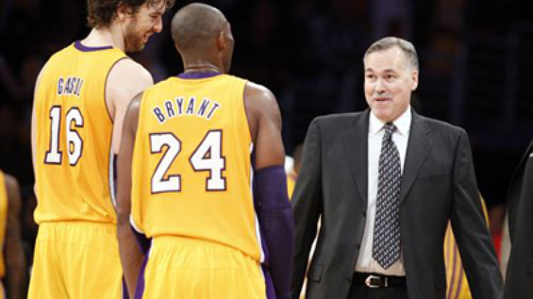 En su primer año, cuando llegó para sustituir a Mike Brown tras cinco partidos, los Lakers, pese a tener a Kobe Bryant, Gasol, Dwight Howard y Steve Nash, llegaron de forma ajustada a los 'play-offs' y fueron 'barridos' por los Spurs, mientras que en esta recién concluida, ya sin el poderoso pívot, que se marchó a los Rockets, y marcada por las innumerables lesiones, sobre todo la de Kobe Bryant, prácticamente inédito, el panorama fue peor y cerró con el peor balance de la historia de los 'púrpura y oro' (27-55) para un récord total en su etapa de 67-87.