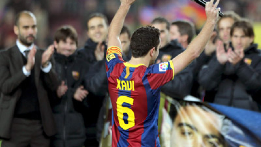 El récord le llega a Xavi en el mejor momento de su carrera. A menos de una semana de la entrega del Balón de Oro, Johan Cruyff apostó abiertamente por él en su habitual columna de los lunes en El Periódico. Para el holandés, sus credenciales son "el rendimiento constante como director de orquesta y marcar los tiempos de todo y de todos". El ex técnico azulgrana también aseguró que Xavi está ante su última oportunidad: "Por edad es ahora o nunca".