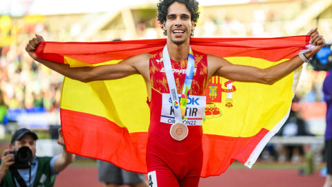 El murciano Mohamed Katir, tercero en la final de 1.500 metros de los Mundiales de Eugene, es el cuarto medallista mundial español, siguiendo los pasos de José Luis González (plata en Roma 87), Fermín Cacho (platas en Stuttgart 93 y Atenas 97) y Reyes Estévez (bronces en Atenas 97 y Sevilla 99), pero el primero que vino del otro lado de Estrecho.