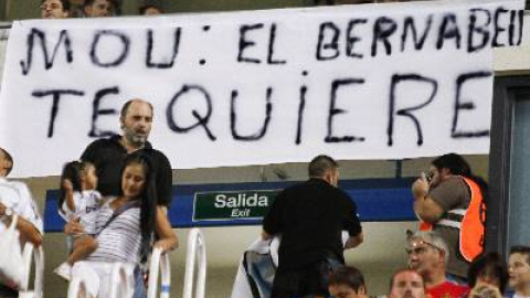 El trofeo Bernabéu, mejor dicho, el Bernabéu, se lo llevó Mourinho de calle. Sin bajarser del autobús. Al menos en mensajes escritos. Antes de que avistase los aledaños del estadio,en las gradas ya lucía un puñado de pancartas que mostraban la adhesión sin condiciones a su entrenador: “El Real Madrid mi religión, Mou mi profeta”; “Mou, tu dedo nos señala el camino”. Mensajes tan solemnes como tremendistas, descripciones emocionales de lo que genera Mourinho entre los adeptos a sus causas y a sus formas.