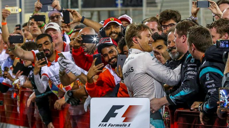 Rosberg, subcampeón del mundo los dos últimos años, logró su decimosexta victoria en F1, la quinta seguida -tras ganar las tres últimas carreras de 2015- al anotarse la primera de las tres carreras nocturnas de la temporada por delante del finlandés Kimi Raikkonen (Ferrari) y del inglés Lewis Hamilton, tercero en el circuito de Sakhir. Del que Nico salió más líder, sumando un tope posible de 50 puntos, 17 más que su compañero y rival inglés.