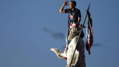 Simeone: "Si se cree y se trabaja, se puede"Todos recibieron el apoyo de los hinchas, que se dejaron las gargantas cuando al final del desfile saltaron al escenario el técnico Cholo Simeone, el capitán del equipo, Gabi Fernández, y el autor del tanto del empate ante el Barcelona, que finalmente dio el título de liga a los suyos, el uruguayo Diego Godín.