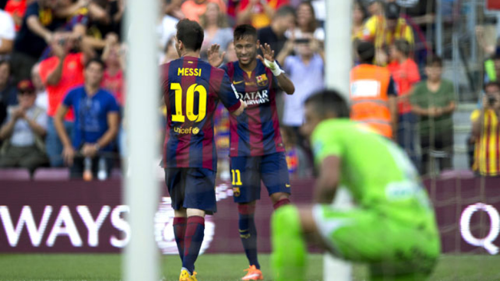 Ficha TécnicaFC Barcelona: Bravo; Alves, Mascherano, Mathieu, Adriano; Rakitic (Sergio Roberto, min.57), Busquets (Bartra, min.63), Xavi; Messi, Neymar y Munir (Sandro, min.72).