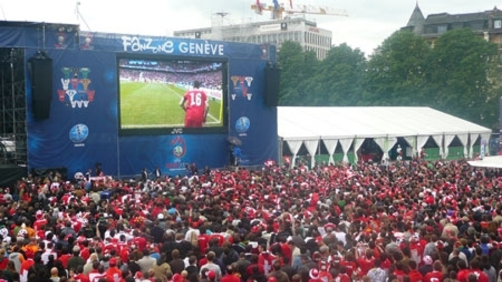 Tampoco sobrepasa la decena de personas en el área en el que se ha instalado una pantalla gigante. En ese sentido, la palma se la lleva la Fan Zone instalada en el centro de Ginebra, en el coqueto barrio de Plainpalais. Allí, más de 70.000 personas vieron ante una pantalla gigante el partido de Suiza contra la República Checa y, luego, un concierto del ex tenista Yannick Noah. Otro estadio de Babel en el que el fútbol vuelve a remezclar idiomas, razas y ganas de juerga.