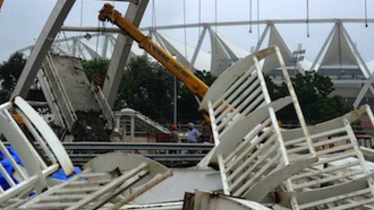 Los Juegos de la Commonwealth que deberían celebrarse a partir del 3 de octubre aún no tienen asegurado su comienzo. La caída de un tejado y un puente en el estadio Jawaharlal Nehru ayer han sembrado las dudas entre la organización y los atletas.