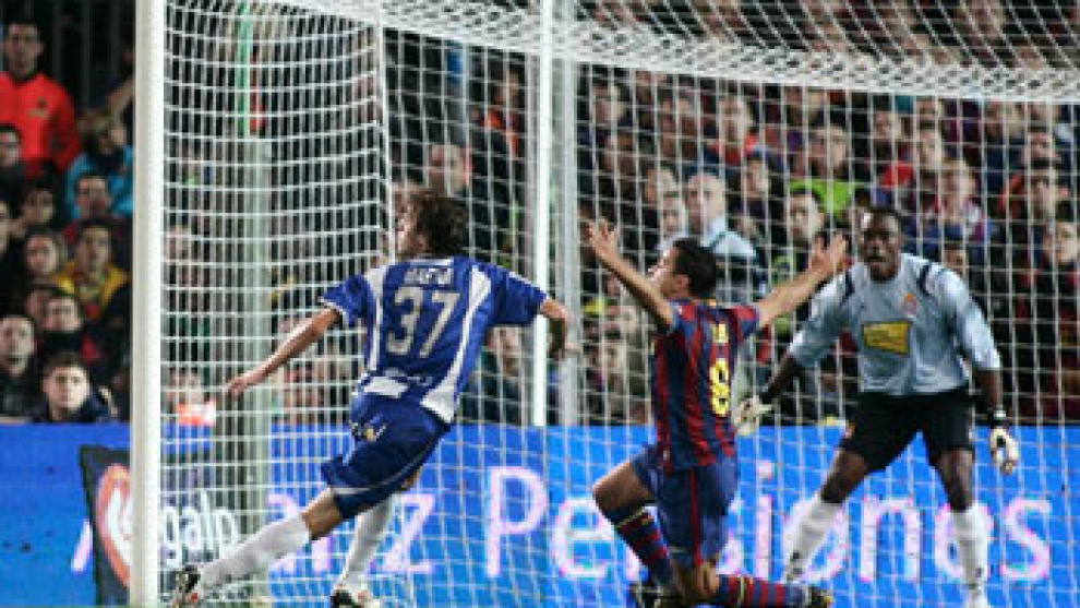 Los pupilos de Pep Guardiola comenzaron el partido, como viene acostumbrando, a llevar el peso del partido acaparando la posesión del balón aunque sin esa movilidad de balón que sorprende a sus rivales mientras que el Espanyol, muy bien colocado, intentaba aprovechar los errores en la medular blaugrana para salir rápido a la contra.