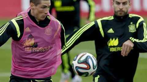 Vicente del Bosque, seleccionador español, comenzó las pruebas con el equipo titular que tiene en mente para cerrar el Mundial 2014 ante Australia, en el que estarán Xavi Hernández y David Villa, que terminan su exitoso ciclo en La Roja, y del que se cae Gerard Piqué por molestias musculares.