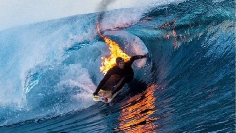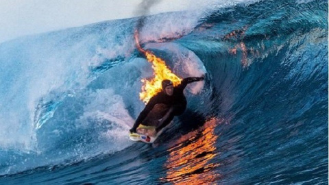 El primer hombre que logra hacer surf envuelto en llamas