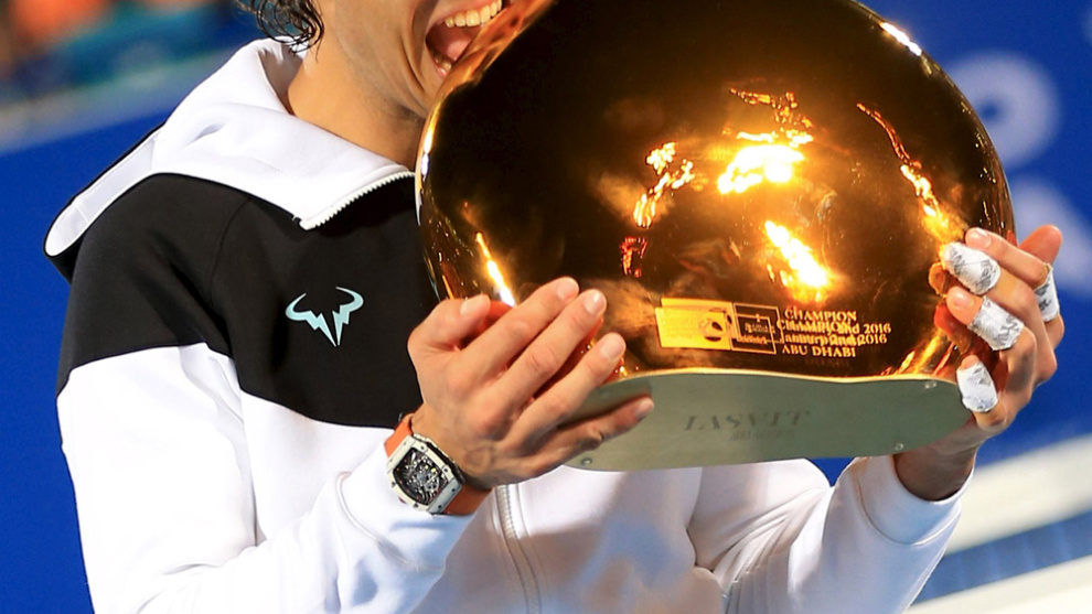 El tenista español Rafael Nadal conquistó este sábado su primer título del año 2016 tras proclamarse vencedor del Mubadala World Tennis Championship, torneo de exhibición sobre pista dura que se disputa en Abu Dhabi, después de derrotar en la final al canadiense Milos Raonic en dos sets (7-6(2) y 6-3).