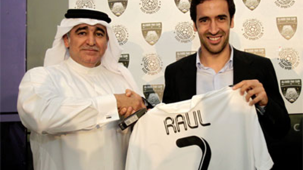 El delantero español Raúl González, exfutbolista de Real Madrid y Schalke 04, firmó este domingo un contrato para jugar dos temporadas en el club Al Sadd de Qatar, donde volverá a vestir una camiseta blanca con su característico número siete.