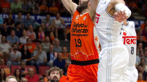 VALENCIA.- El Real Madrid aguantó la enorme presión a la que le sometió el Valencia Basket durante toda la segunda parte y logró cerrar su pase a la final del la Liga ACB al imponerse por un ajustado 80-82 en el cuarto partido de la serie, que consiguió que cayera de su lado gracias a su fiabilidad desde la línea de tiros libres.