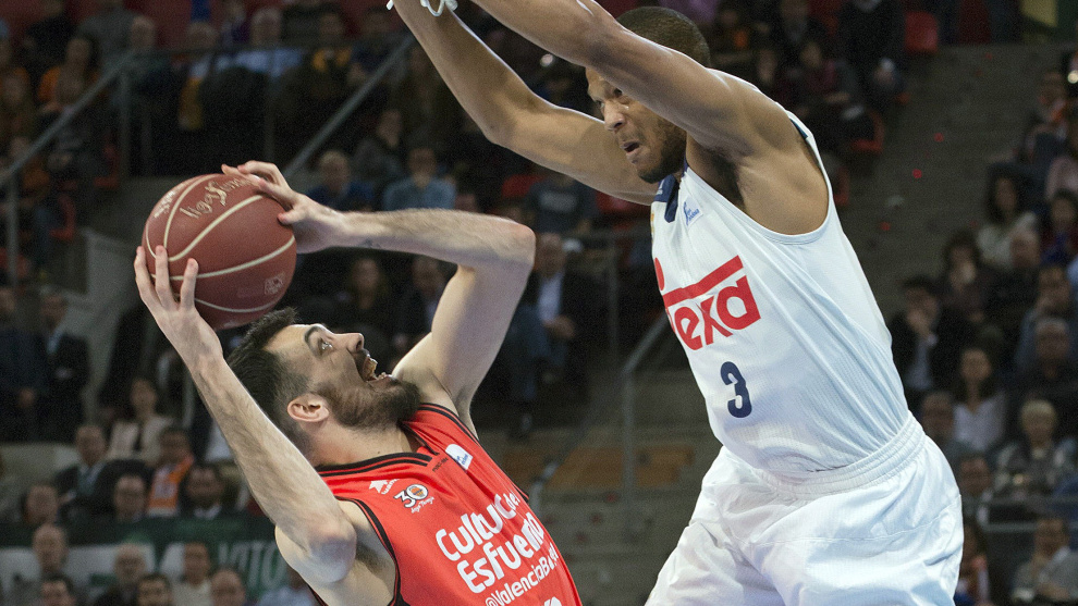Las tendencias no variaron y Jaycee Carroll empezó a engrosar sus estadísticas en una fase de intercambio de canastas que convenía más al juego madridista, con más hombres aportando en ataque, un inspirado Randolph (14 puntos y cinco rebotes al descanso) y una sólida defensa que a los valencianos les costaba doblegar.