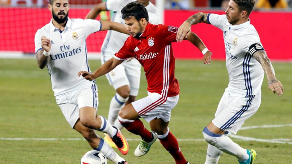 Una imagen del Real Madrid muy diferente a la que tuvieron en la primera parte cuando el dominio fue del Bayern de Munich, que controló la mayor parte del tiempo el balón y además también generó las mejores oportunidades de gol con cinco disparos a puerta, incluidos dos del defensa austríaco David Alaba, que fue el mejor. Ambos fueron de libre directo y en el segundo, en el minuto 25, Alaba con la izquierda estrelló el balón en la cruceta del poste derecho de la portería defendida por Kiko Casilla, que estuvo brillante en dos buenas intervenciones a disparos de Tiago Alcántara.