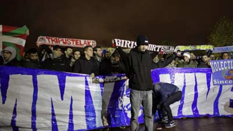 Señaló que "la lectura" del comunicado era "un ejercicio de transparencia" contra "una injusticia" porque, aseguró, "no es fácil" tener que justificarse "por las agresiones sufridas el pasado domingo cerca del estadio del Atlético de Madrid pues el balance fue el brutal asesinato" de un miembro de su grupo.