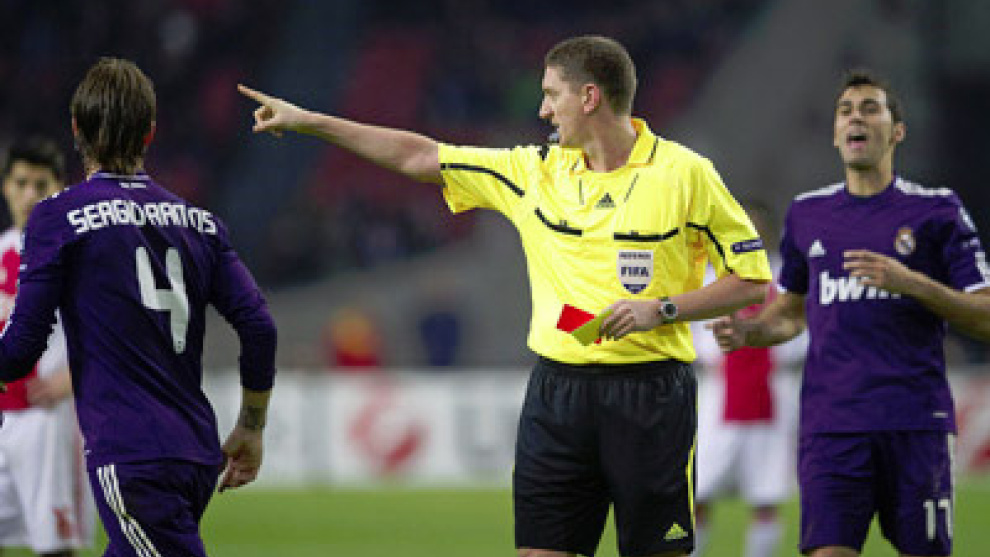 El Barça sacó el lunes del césped al Madrid, pero en los comités disciplinarios, un escenario muy frecuentado desde que llegó Mourinho, se metieron personalmente los blancos sin que nadie los empujara. Este martes el club salió malparado en dos ellos, especialmente en el de Control y Disciplina de la UEFA, que decidió sacarle los colores y castigarlo por conducta inapropiada en el sainete de las rojasa la carta en los últimos minutos del encuentro de Liga de Campeones ante el Ajax. Dos partidos de sanción al entrenador portugués, uno de ellos en suspenso, y multas a los implicados por un total de 215.000 euros.
