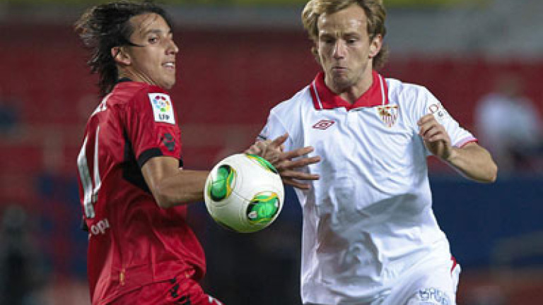 El equipo sevillista dominó la primera mitad sin prisa y con comodidad. Con ambos equipos optando por las rotaciones en sus 'onces' el duelo apenas tuvo ritmo en los primeros 45 minutos. El Sevilla buscó sus opciones ante un Mallorca desdibujado, en especial con Perotti, hasta que Manu del Moral abrió el marcador en el minuto 21, aprovechando la blanda defensa visitante en un córner. El delantero andaluz estuvo apunto de ser sustituido minutos antes por un tremendo golpe en la cabeza y oreja derecha con la bota de un rival.