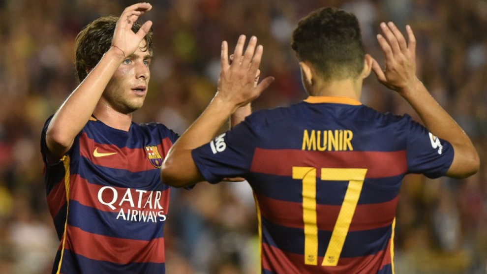 Sergi Roberto y Munir durante un partido de pretemporada. - AFP