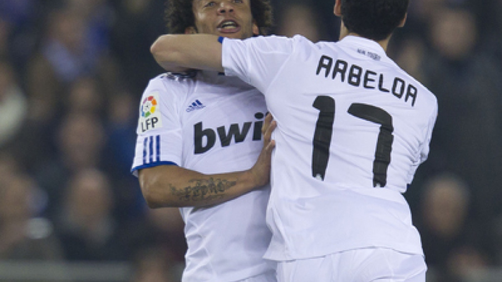 Desde su aterrizaje (forzoso) en el Madrid, a Mourinho no le gustó la idea de contar con Ramos como lateral. Prueba de ello fue el interés por traerse del Inter a Maicon y, aún más, que el Madrid esté sondeando el mercado en la búsqueda de otro lateral derecho. En la banda contraria, Marcelo estaba bajo sospecha, pero el brasileño se propuso ser y parecer un defensa en toda regla. "Mourinho me ha ayudado mucho a mejorar defensivamente y a ser más agresivo. Ahora si ves cada partido voy a cada balón como loco", alardeó Marcelo al poco de arrancar el curso. Sin embargo, esa exhibición de pundonor, esa agresividad confundida con locura, que no va ni con su personalidad ni con su fútbol, duró lo que podía durar, de ahí que Marcelo poco a poco volviera a su ser y el Madrid pagara alguno de sus desajustes. El brasileño es una bomba de relojería, difícil de desactivar una vez que entra en el área rival. Sus irrupciones de fuera hacia adentro son imprevisibles. Cuanto más si, como sucedió ante el Espanyol, Cristiano le ve como alternativa a sus jugadas personales y le asiste. En contra de quienes creen (y si son entrenadores, así lo ordenan) que la subida de un defensa debe ser cubierta con la permuta de un centrocampista, la lógica dice que de nada sirve la incorporación de un jugador si es a costa de otro. Además, el Madrid no es un equipo que defienda con balón ni que se ordene a través de él, de ahí la importancia de que sus jugadores, y especialmente los que tienen encomendadas tareas defensivas, recuperen rápidamente la posición tras una pérdida. Si tuvieran la pelota, no les haría falta, pues siempre estarían bien colocados. Xabi Alonso, cuya jerarquía nadie discute dentro y fuera del campo, es el encargado de recordar a Marcelo que debe recuperar la posición cuando el brasileño se queda enganchado.