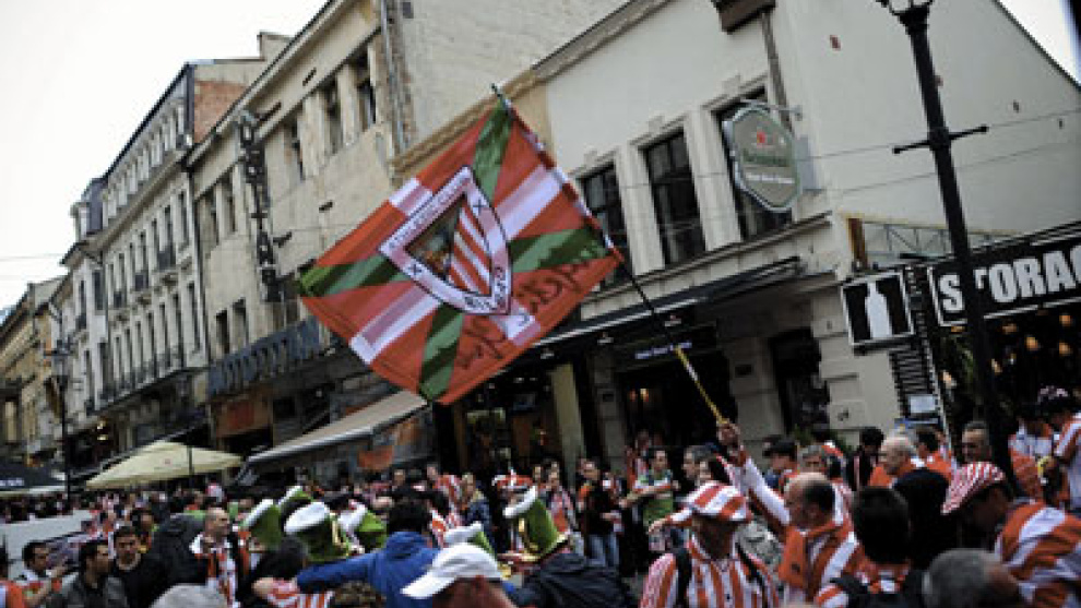 A apenas unas horas de la esperada final, los aficionados del Atlético han equilibrado la superioridad de los bilbaínos que habían llegado antes a Bucarest. Ambas aficiones se congregan en el casco histórico de la capital rumana tiñiéndole de rojiblanco, animándolo con cánticos y esperando a acudir al estadio Nacional.