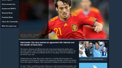 Silva agradeció al Valencia y a su afición el trato recibido durante sus seis años en el club y se mostró dispuesto, a través de la página web del Manchester City, a afrontar un nuevo reto en el fútbol inglés.
