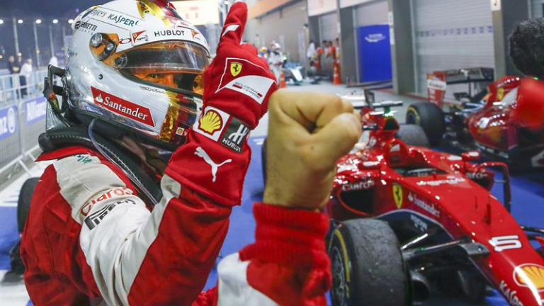Vettel se impone en Singapur; Alonso y Hamilton abandonan