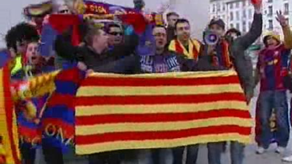 Decenas de aficionados del FC Barcelona han tomado las calles de la localidad francesa de Lyon las horas previas del partido de cuartos de final de la Liga de Campeones.Los hinchas barcelonistas se han mostrado muy optimistas y aseguran que al equipo no le afecta la campaña que desde Madrid habla de crisis en el club tras la última derrota ante el Espanyol.