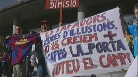 La afición del FC Barcelona pidió una vez la dimisión del presidente del club, Joan Laporta. En esta ocasión fue un grupo de hinchas el que se concentró antes del Barça-Valencia para expresar su malestar con el dirigente y la marcha del equipo.La afición está harta tras dos temporadas sin títulos y exige un cambio de rumbo.