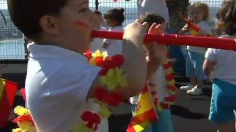 Aunque todavía no son capaces de hacer sonar bien una vuvuzela. Estos pequeños que apenas levantan un palmo del suelo, sí tienen fuerzas para animar a La Roja. Porque la afición no entiende de edades, y crece por momentos, salpicando de emoción a todas las generaciones. Un derroche de pasión que contagia incluso a otras nacionalidades. Porque en la calle brillan ya los colores de nuestra selección. Y en algunos bares, también. Que no falte de nada para celebrar, eso esperamos, un buen resultado. Y aunque la comunidad chilena que vive en nuestro país también saca sus mejores galas para ese crítico partido, hoy la mayoría se prepara para hinchar bien los pulmones y gritar muchos goles.