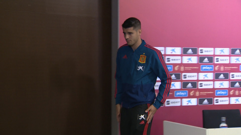 Imágenes del delantero del Atlético de Madrid y de la selección española, Álvaro Morata en rueda de prensa.