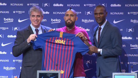 Imágenes de la presentación del nuevo jugador del Barça, Arturo Vidal.
