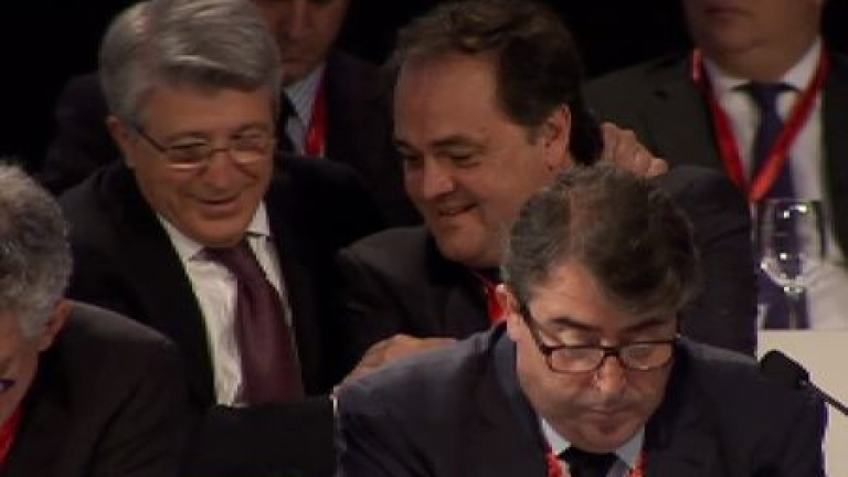 Preguntado por las futuras incorporaciones, el presidente del Atlético dijo que había que "esperar unos días", y reconoció que alguno de esos fichajes podrá ser en el ataque.