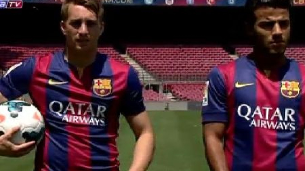 El FC Barcelona ya ha presentado la nueva equipación blaugrana para la próxima temporada. Los jugadores encargados de lucirlas esta mañana ante los medios de comunicación han sido Delofeu y Rafinha en el Camp Nou. -Redacción-