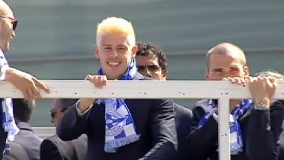 El Depor sigue celebrando su reciente ascenso a Primera División, que consiguieron el pasado sábado. El equipo al completo se ha paseado por la ciudad en un autobús descapotable y han visitado a los patrocinadores, además de darse otro baño de multitudes.