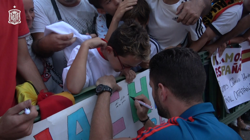 Imágenes del encuentro de Nacho Fernández con un joven aficionado que, como él, es diabético, y declaraciones del niño tras las palabras de cariño del futbolista.