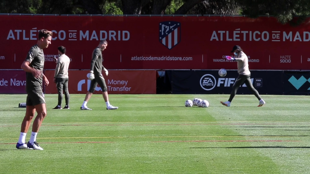 Imágenes del entrenamiento del Atlético de Madrid que se prepara para medirse al Huesca el miércoles.