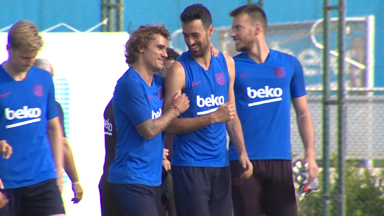 Los jugadores del FC Barcelona Ousmane Dembélé y Marc-André Ter Stegen han recibido este lunes el alta médica tras sus respectivas lesiones y han participado en el primer entrenamiento de los dos que llevará a cabo la plantilla en esta primera jornada de trabajo físico de la pretemporada con las novedades de Griezmann, Neto y De Jong.