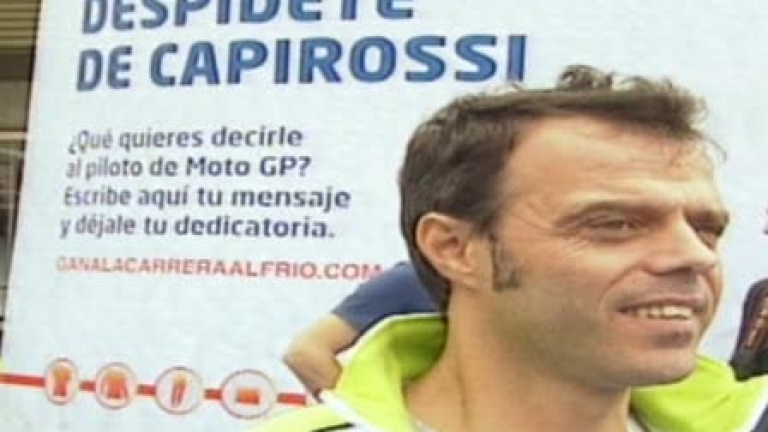 22 años recorriendo el campeonato del mundo sobre dos ruedas que ahora ven su fin. El piloto de MotoGP Loris Capirossi se retira y sus seguidores, acompañados por Ángel Nieto y Randy de Puniet, han querido rendirle un homenaje por todo ese tiempo de éxitos.