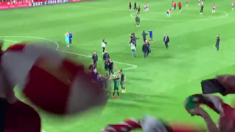 Imágenes de jugadores del Athletic celebrando en Granada su pase a la final de la Copa del Rey.